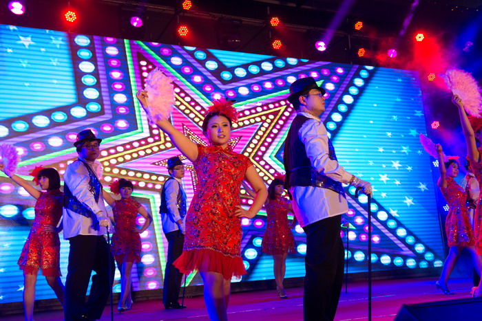 頒獎(jiǎng)聯(lián)歡會(huì)在明朗歡快的開(kāi)場(chǎng)舞《歡樂(lè)中國(guó)年》中拉開(kāi)序幕。伴隨著動(dòng)感的音樂(lè)聲,集團(tuán)的姑娘們邁著輕盈的舞步,翩翩起舞,蘊(yùn)含了集團(tuán)蒸蒸日上、紅紅火火的發(fā)展前景,“恭喜恭喜中國(guó)年,五谷豐登笑開(kāi)顏,紅紅火火到永遠(yuǎn)?!备浅隽舜藭r(shí)廣大員工辛勤工作,享受豐收喜悅的心聲,精彩的演出贏得大家熱烈的掌聲和歡呼聲。